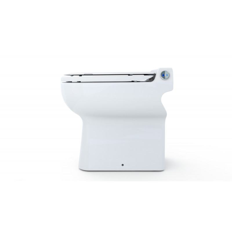 Il est doté d’un moteur silencieux (<60 dB*) et d’un système de double chasse économique qui consomme seulement 2 à 4 litres d’eau par chasse.
