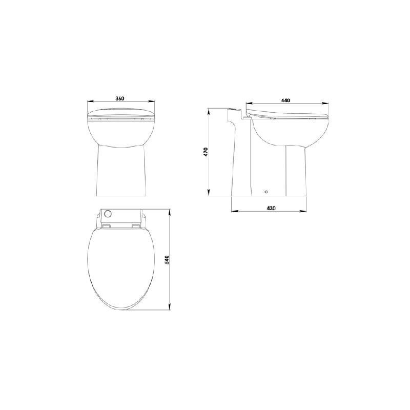 Colisage : Céramique (WC) + broyeur intégré + Abattant + vis de fixation au sol